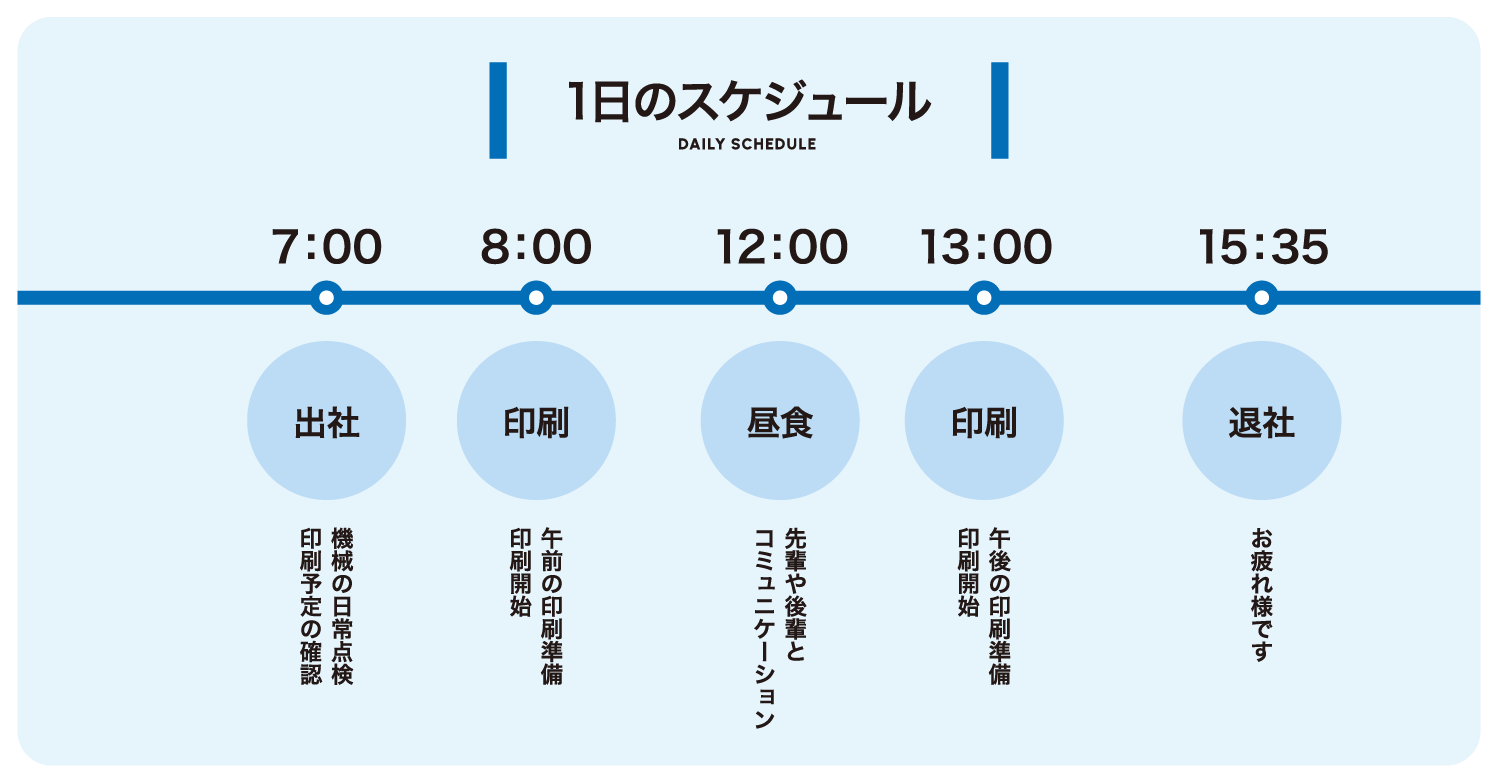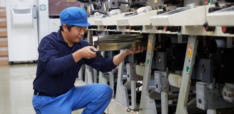 - 印刷課として、ロール印刷機のオペレーターをしています。版やインキの準備、印刷の位置合わせ、印刷チェック、製品印刷が主な業務になります。印刷している最中は、検査機を確認し、不具合があれば対処しています。
