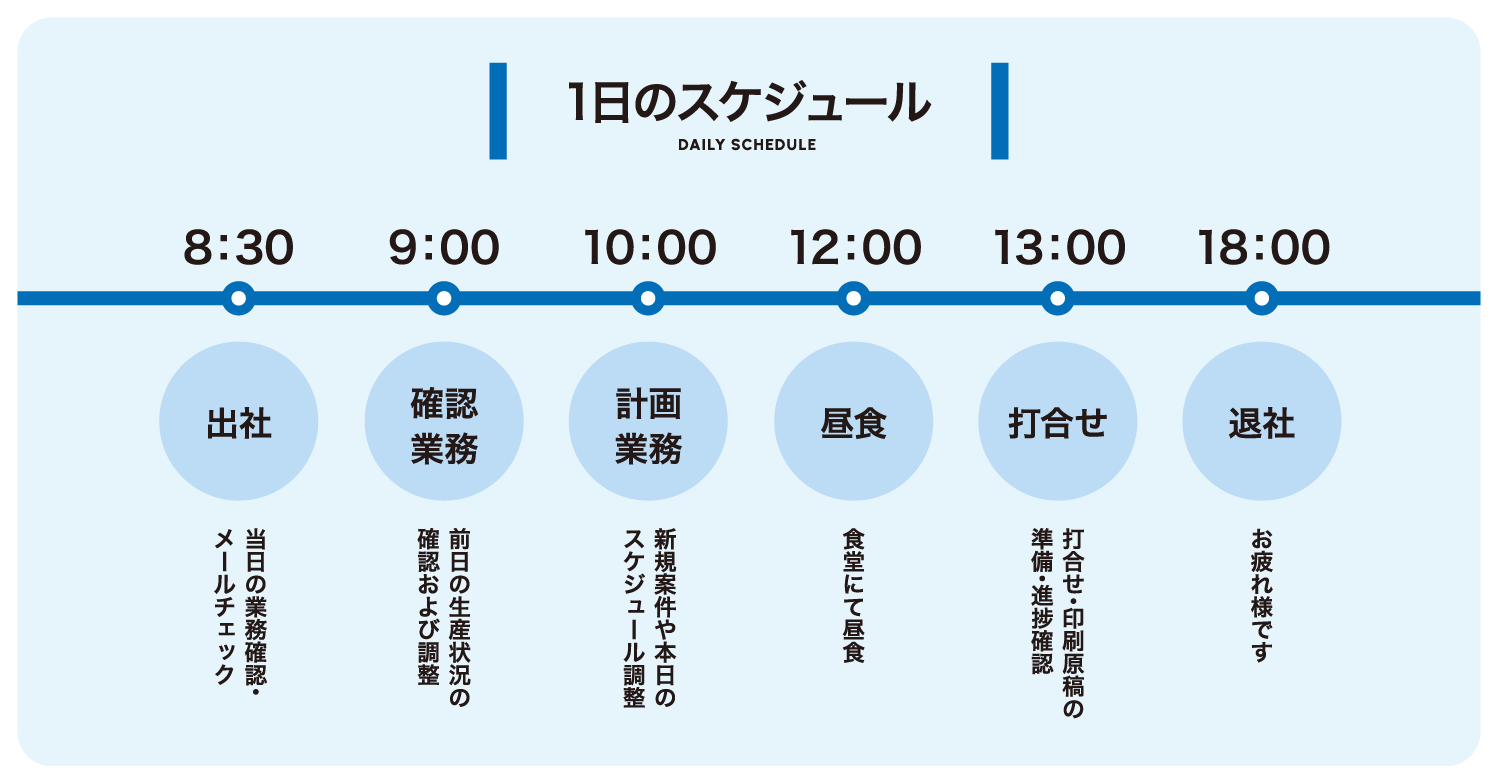 品質向上、生産調整、コストの低減、新素材のご提案など、営業と現場をつなぐ重要な役割を担っています。また、お客様の生産ラインで発生している不具合などのお困りごとは、現地にて「立会い調査」・「改善提案」・「テスト印刷」を行い、問題の解消をして参ります。